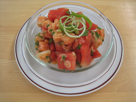 Lachsfilet in ca 1 cm grosse Würfel schneiden