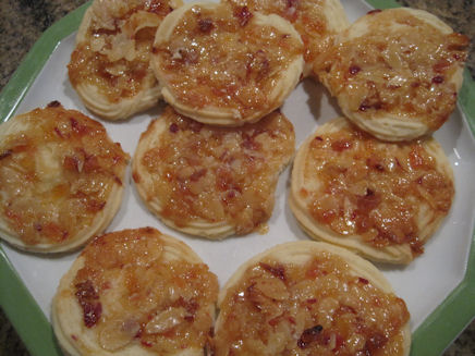 Blätterteig auf wenig Mehl 2-3 mm dick auswallen. Pro Portion 1 Rondelle von 17cm Durchmesser sowie 1 Rondelle von 12 cm ausschneiden. Die grössere Rondelle in die vorbereiteten Förmchen legen, mit einer Gabel einstechen. Füllung gleichnmässig in die Förmchen verteilen. Überstehende Ränder über die Füllung legen.