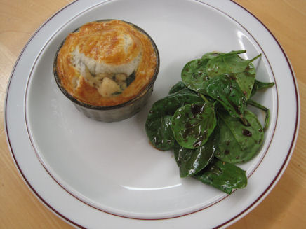 Spinatblätter beifügen und mischen. Törtchen und Salat auf Tellern anrichten